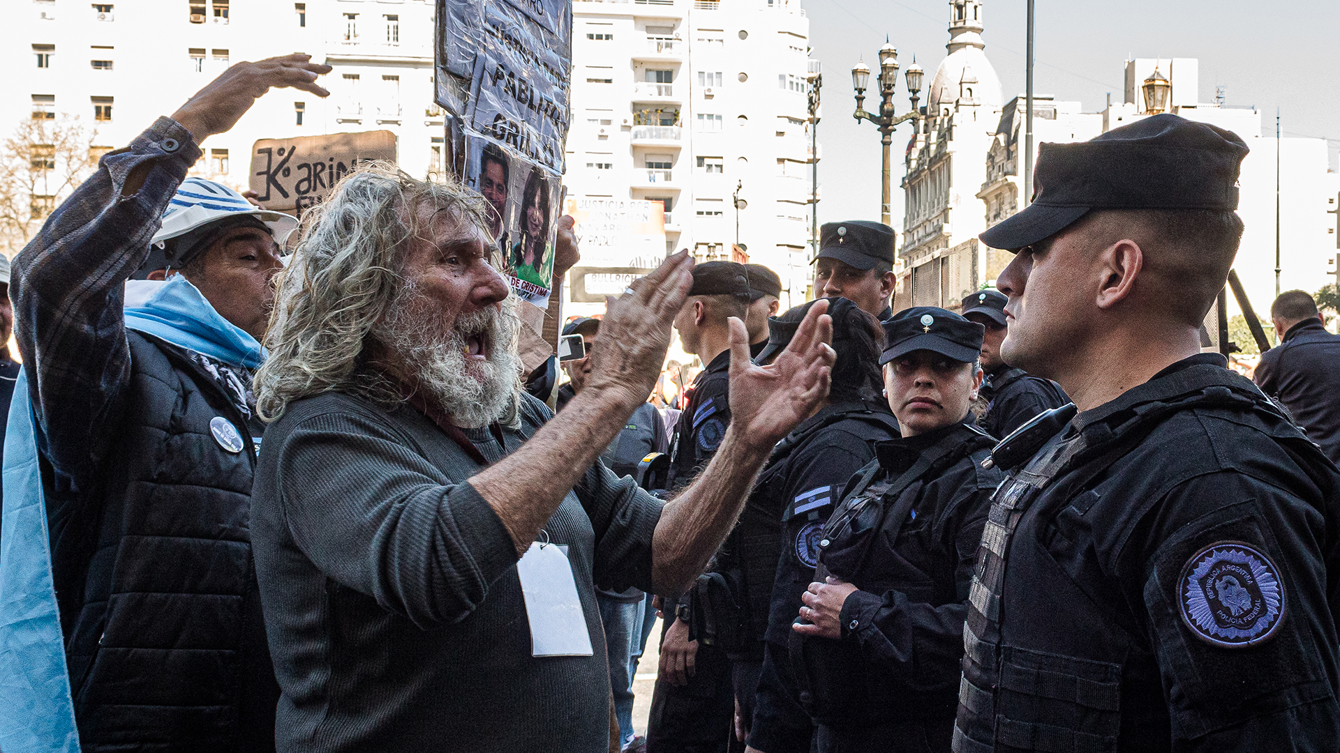 Las tensiones se habían ido intensificando durante horas en aquella cálida tarde de miércoles. La protesta era más grande que habitualmente, ese día se habían unido fanáticos de fútbol de equipos rivales para apoyar a los jubilados.